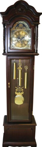 Beautifully crafted Edward Meyer Grandfather Clock, BIG BUCKS OFF! It's a timeless classic... but of course, it keeps time with exceptional accuracy! A stately addition to your home, offering style and function for decades to come. I negotiated a deal that saves hundreds off the usual specialty store price. Here are the gorgeous details: Sturdy-made with solid and composite woods and veneers, with Dark Cherry finish; It's not battery powered or digital... classic 31-day wind-up precision movement; Brass-tone decorative pulleys and polished pendulum. Decorative side panels; Chimes ring out the hour and once every half hour; It's 22 x 10 x 75 1/4"h. Weighs 51 lbs. An investment that'll pay off for a long time. Order yours this minute! Edward Meyer Grandfather Clock with Beveled Glass
